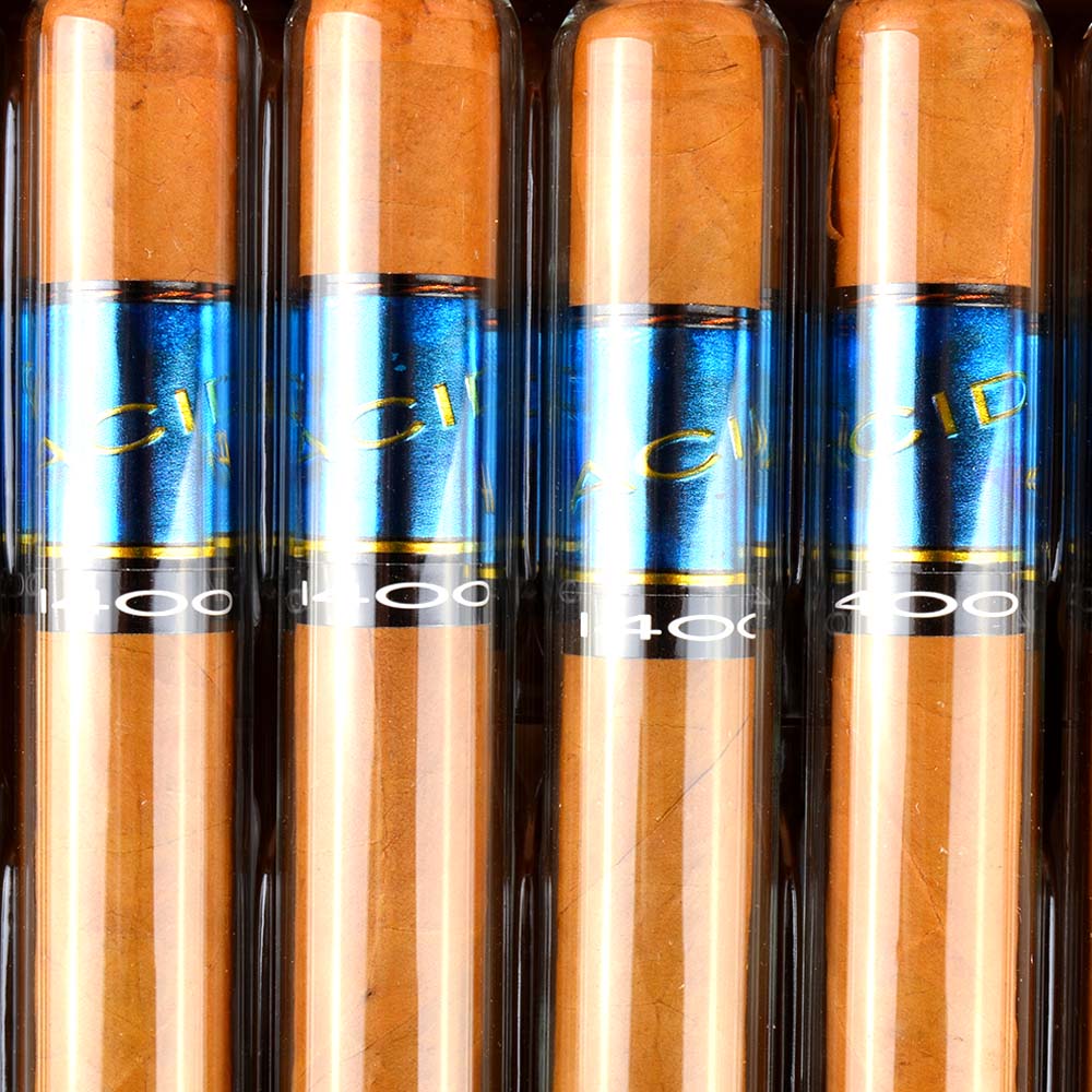The Acid Blue 1400CC Cigars exemplify the definition of a lusciously smooth smoke. Cloaked in a silken Connecticut Shade wrapper that gives way for a soothing effect on the senses, each of these cigars contain premium Nicaraguan long filler tobaccos in order to boast the ultimate smoking experience. Gentle on the sense, these cigars render a medium to full bodied smoke - burning slowly and efficiently all the way to the finish. Experience the sweetness of cotton candy throughout the entire burn after the initial ignition. With an effortless draw and a solid construction, these cigars are the perfect solution for a short, recreational smoke.
