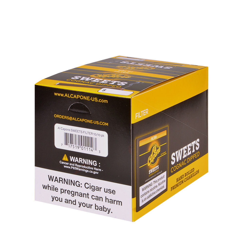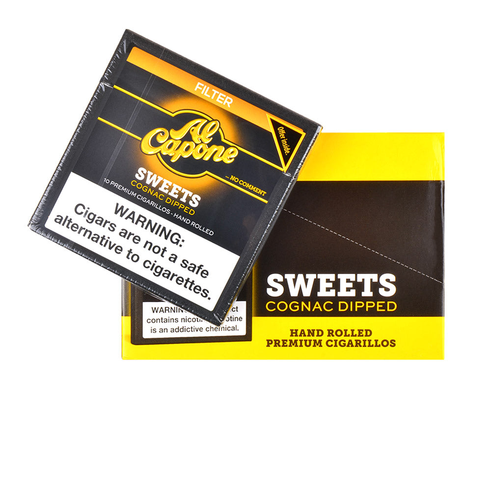 Al Capone Sweets Filter Cognac Cigarillos have a very authentic taste and quality that allows many smokers to enjoy them to their full capacity. With an incorporation of a cognac flavor, Al Capone Sweets Filter Cognac Cigarillos will do nothing but compliment the smoker with a sweet tooth and active taste buds. Al Capone Sweets Filter Cognac will never dissatisfy you with their outstanding quality!