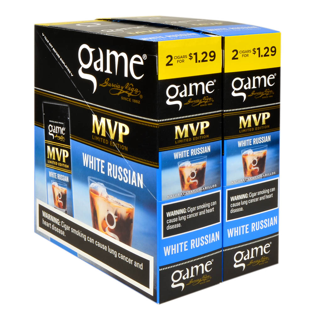 Game Cigarillos Foil MVP White Russian 2 for 1.29 Pre-Priced 30 Packs of 2