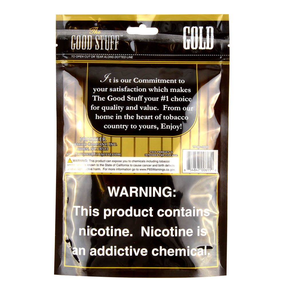 Good Stuff Gold Pipe Tobacco 2 oz Pack offers a light, mellow smoke with the quality and consistency that define the Good Stuff brand. Made from premium domestic American tobaccos, this blend provides a smooth, well-balanced flavor that’s easy to enjoy. The compact 2 oz pouch makes it a great option for sampling or carrying on the go while maintaining the same trusted Good Stuff quality.