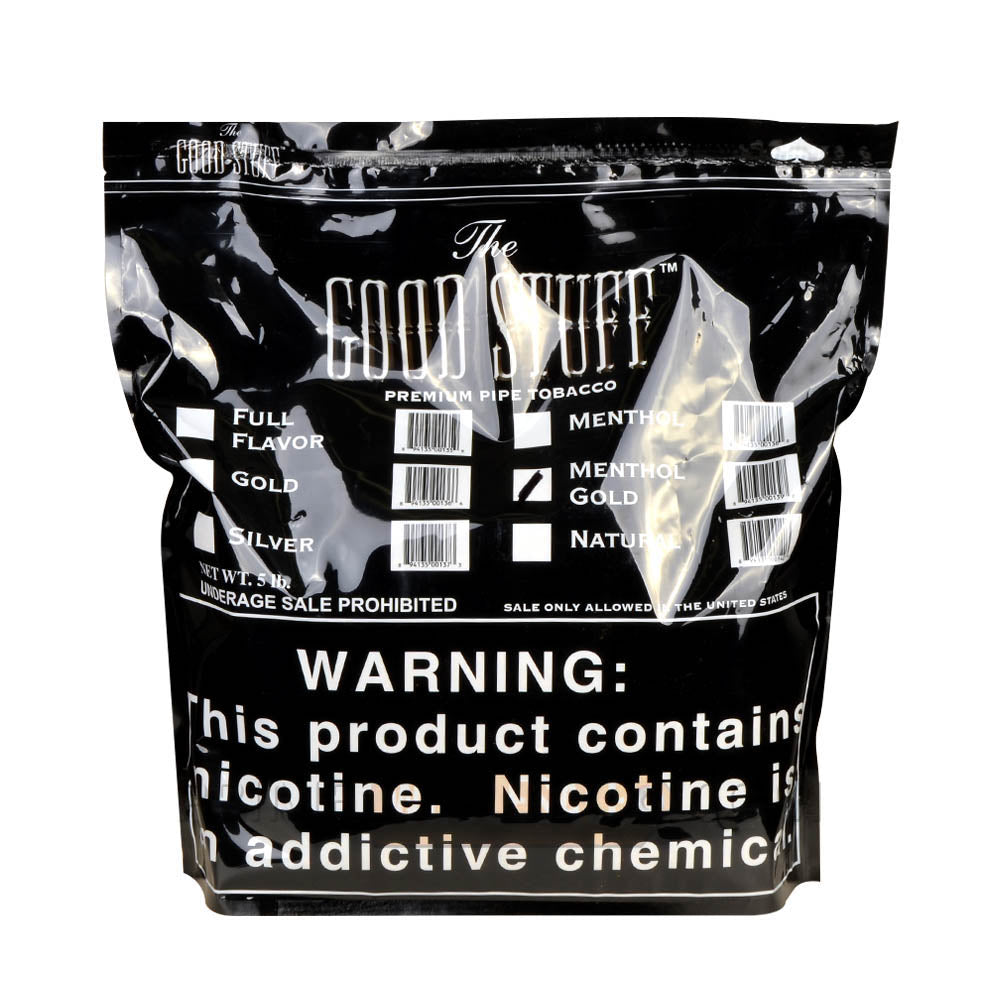 Good Stuff Menthol Gold Pipe Tobacco Bulk 5 lb Pack combines cool menthol freshness with smooth, golden tobacco for a balanced, satisfying smoke. Crafted from premium domestic tobaccos, this blend delivers a crisp, clean flavor that pipe smokers love, now in a convenient bulk size perfect for long-term use.