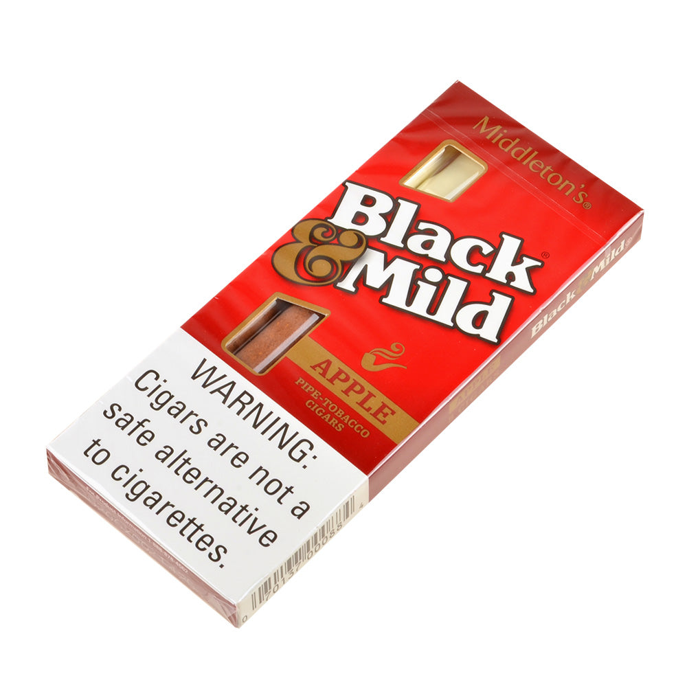 Experience the taste and smell of a backyard apple orchard, exclusively from Black & Mild. With a mellow taste profile, these cigars offers a smoke that isn 't harsh at all and appeals greatly to those that do not take delight in strong, overpowering smoking experiences. The sweet apple taste that embraces your senses once you take a puff out of these cigars is guaranteed to leave a lasting impression. Wrapped and bound by the homogenized tobacco leaf, each cigar contains an impeccable blend of John Middleton 's pipe tobacco that has been cured and dried to perfection. Assimilating dimensions of 5x30, each cigar feels just right in the hand as your fingers wrap around the immaculately designed wrapper. Prime Wholesale offers this product in 10 packs of 5 or a box of 25 accordingly. Middleton 's does an impeccable job packaging these cigars in order to preserve their integrity. Try these cigars now - you won 't be disappointed!