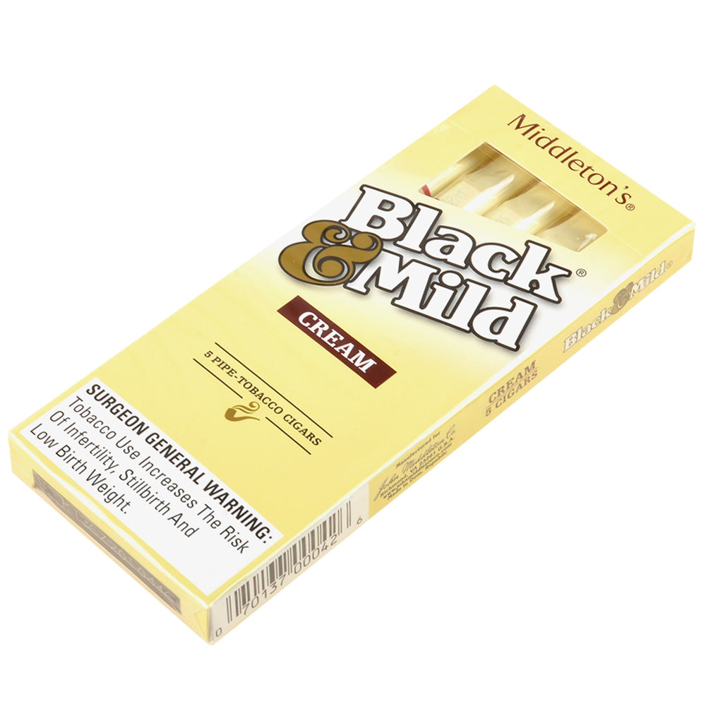 A gentle, creamy smoke is a recipe for a great smoking experience. John Middleton 's took their Black & Mild Cream cigars to a whole different level by encapsulating them with a top of the line homogenized tobacco leaf that renders an unmatched smoke by offering the smoker an even and consistent burn. With a creamy finish, one should expect a mellow-bodied smoke that shows off a great taste but succeeds not to overpower the senses. With a binder that is also comprised of the same high quality homogenized leaf, these cigars take on a stylish appearance that is light brown in color - the color of a truly natural cigar. Conveniently sized to match the dimensions of 5x30, these machine made cigars are rolled with perfection. Each creamy cigar is aromatic in flavor - a perfect recipe to spoil the senses. Prime Wholesale offers these cigars in plastic tips, whereby the packaging method is conveniently offered in 10 packs of 5.
