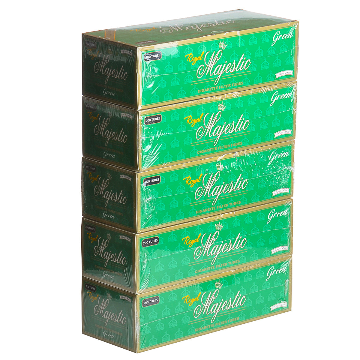 The Royal Majestic Green King Size Tubes are the best for the smoker that takes true delight in renewing his or her senses once and for all, blessing them with a minty flavor that underpins the flavor of any cigarette tobacco the tubes are packed with. Manufactured with an attached filter that perfectly swathes the lips upon every single compression and inhalation, this manufacturer from the Philippines offers a one of a kind extrusion method of any harmful byproducts of smoking that are undesired by the smoker. These king size beauties feature a perfectly cut veneer that never fails to impress. With a flavor that serves as the perfect compliment to any infused cigarette tobacco, one can choose the flavorful combination he or she would like to experience in any way that would be the most pleasurable. These tubes boast a great value and are truly the most royally majestic in their class.