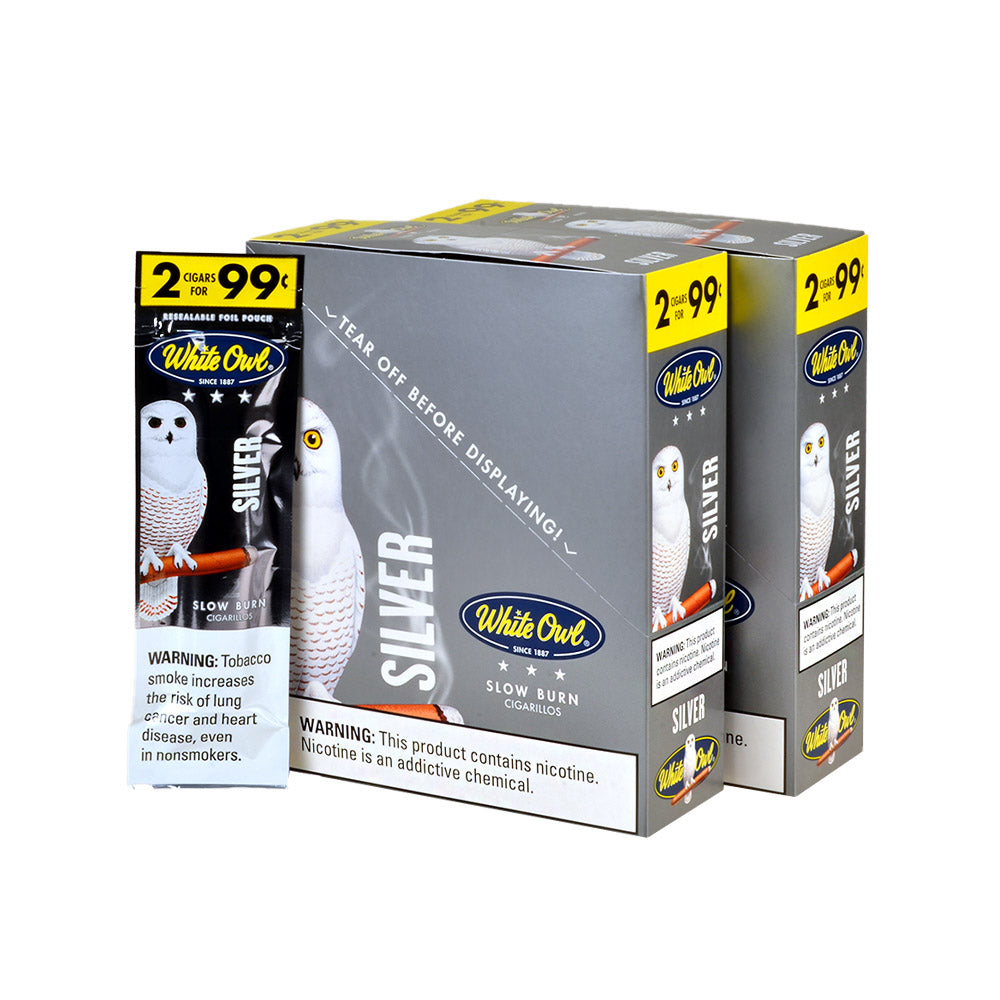 If you're looking for a slow-burning cigar, try a White Owl Silver. These cigars have a smooth tobacco and tangy natural-feeling taste. The smoke is mild enough to enjoy anytime of day. The White Owl Silver cigarillo is available in 30 packs of two. To order this product, add it to the basket, choose your preferred payment option, and we will ship it to you within the contiguous United States.